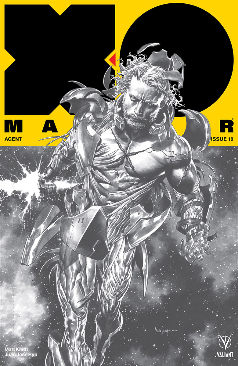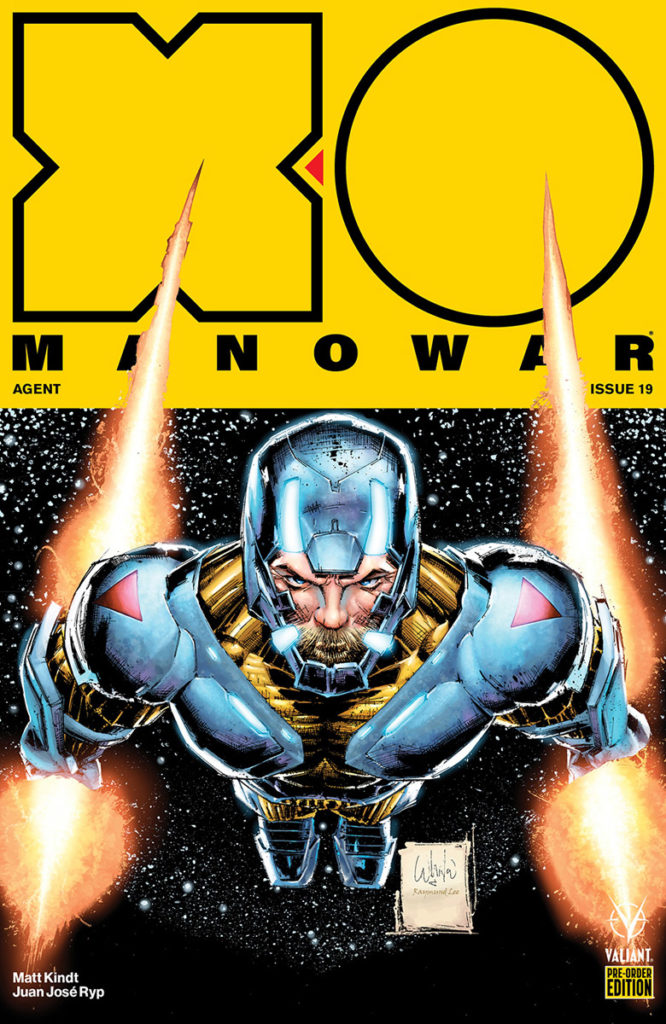 Available only as a pre-order set to those who reserve the next four issues from Eisner nominated writer Matt Kindt (ETERNITY) and revolutionary artist Juan José Ryp (BRITANNIA) – four, 40-page, massively expanded editions of X-O Manowar’s next otherworldly adventure, “AGENT” – can only be ordered as a set and must be reserved with your local comic shop by the final order cut-off date of September 3rd, 2018!