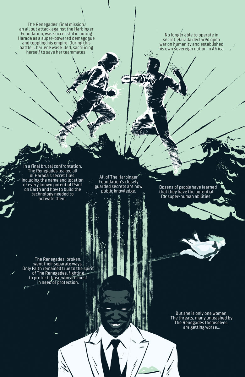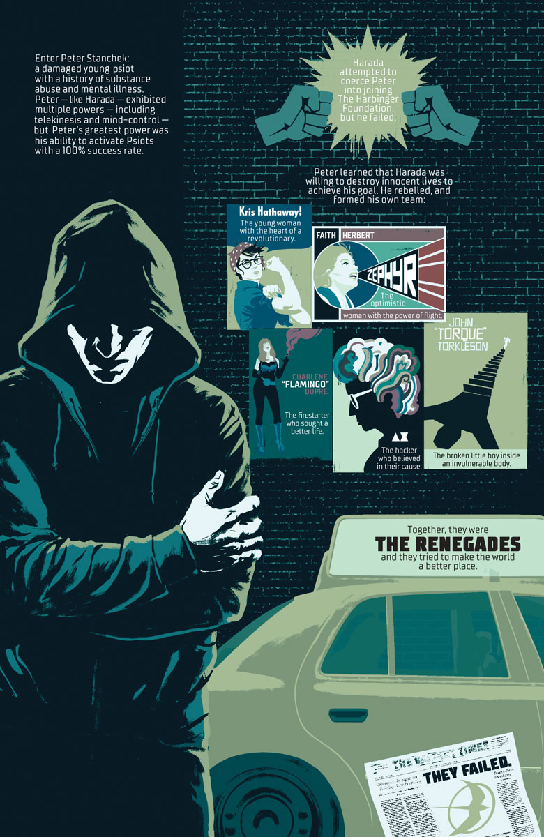 With this revolutionary upheaval now in motion, Kris Hathaway, John “Torque” Torkelson, Faith “Zephyr” Herbert, and Peter Stanchek are about to discover their calling. Together, the Harbinger Renegades are moving from town to town, building their ranks, and subverting authority one mind at a time…and setting out to prove once and for all that behind their power, there has always been a purpose.