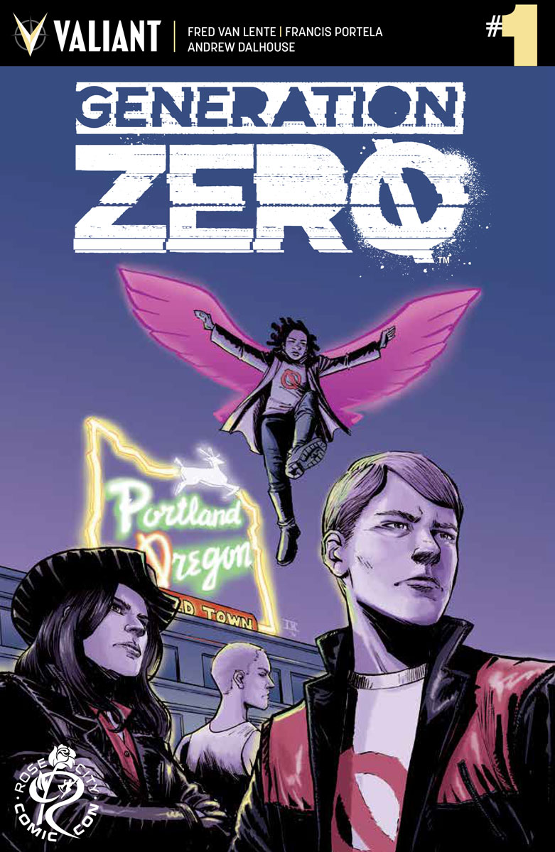 Plus: Debuting only at Rose City COMIC CON 2016, get your hands on the GENERATION ZERO #1 ROSE CITY COMIC CON VARIANT – featuring the artwork of acclaimed artist Ibrahim Moustafa(Doctor Fate)! Jump on board the latest hit series from “THE FUTURE OF VALIANT” here as New York Times best-selling writer Fred Van Lente (IVAR, TIMEWALKER) and blockbuster artist Francis Portela(FAITH) take Valiant’s team of human hydrogen bombs off the streets and into their most dangerous challenge yet: high school!