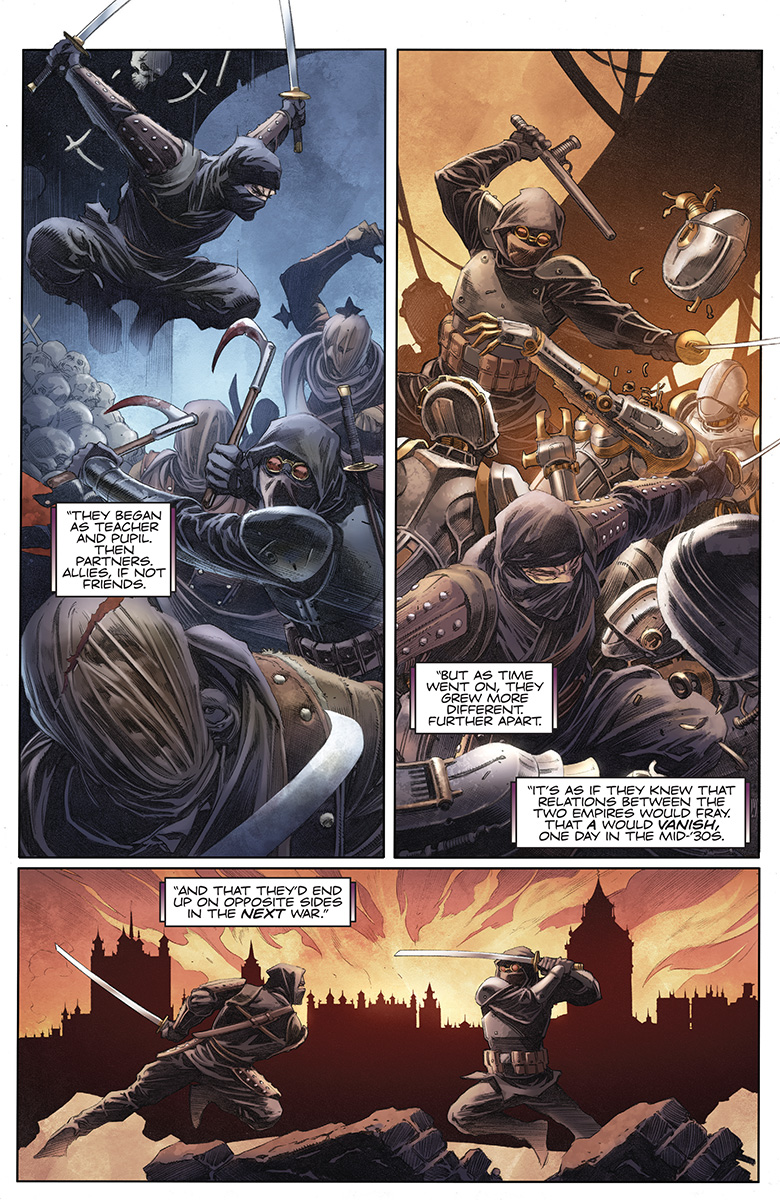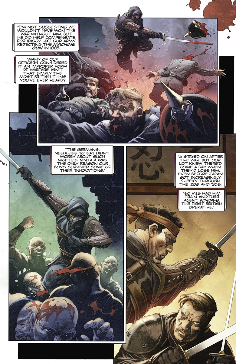 “[Colin King] is back in London doing his freelance thing, working for MI-6 as well as other clients. But he’s isolated,” said writer Christos Gage. “He’ll be confronted by the ghosts of the past…both the Ninja Programme’s and his own. And many of those ghosts are very, very angry. Things will be shaken up. Friends might become foes, and vice versa. We’re creating this rich history, this world, and then stirring it up, turning it upside down, and setting it all loose.”