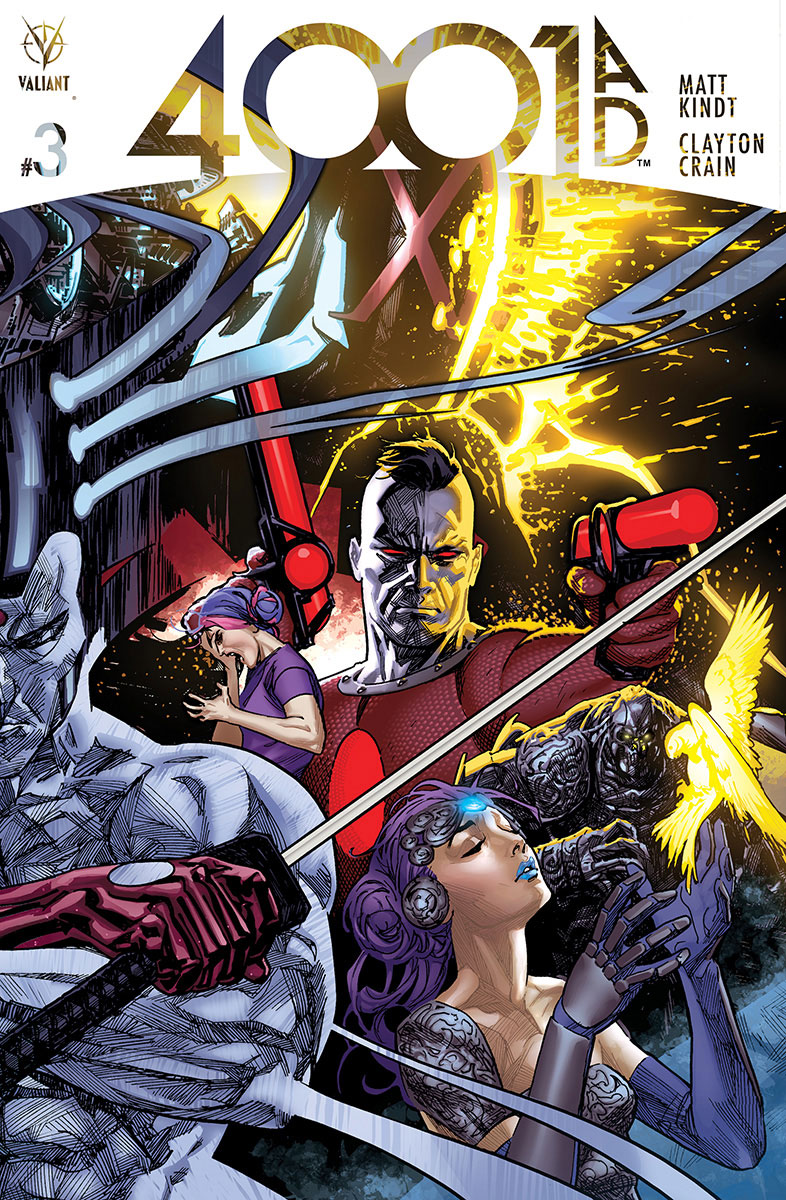New York Times best-selling writer Matt Kindt (DIVINITY) and superstar artist Clayton Crain (RAI) continue the summer’s blockbuster event in the year 4001 A.D.!