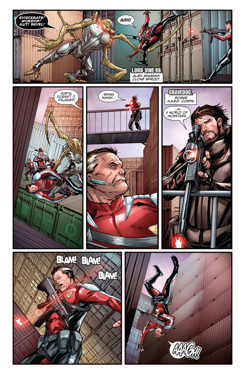 Harada’s vision to save the world faces catastrophic failure as the Foundation Zone finds itself squeezed between the armies of the world. Now, at his weakest point, the allied forces led by Livewire and H.A.R.D. Corps’ Major Charlie Palmer conspire to hit him hard and fast on every front. But with Harada’s team of monsters starting to turn on each other, does this super-powered mastermind stand any chance of winning the fight?