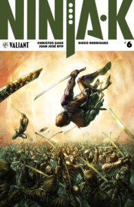 His allies have turned against him. His last options have been exhausted. And there is nowhere left to run. Now, Ninjak – the rogue super-spy turned against his former masters by the cunning assassin called Roku – must face the final revelation of his no-holds-barred showdown with the heroes of the Valiant Universe. Bloodied but unbowed, Colin King’s gauntlet ends here…and Valiant’s first-of-its-kind crossover between live action and the comic book page is about to come to an explosive finale that will leave you stunned!
