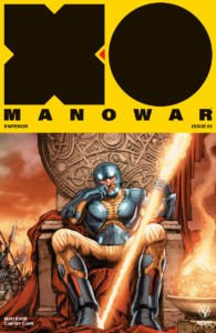 With his throne attained and his enemies defeated, Aric of Dacia is not only the undisputed emperor of the war-shattered world of Gorin… He is one of the most feared warlords in the known galaxy! But as this former hero of Earth grows more confident with each brutal campaign, he’ll soon discover that his greatest enemy is…himself. Can Aric and the ultra-powerful X-O Manowar armor that he wields peacefully sustain such unyielding amounts of power…or will the thirst for war inside him consume everything he’s fought for?