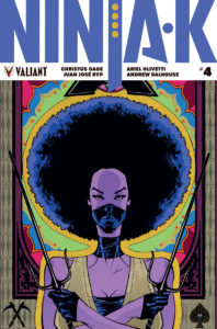 At the height of 1970s Britain, MI-6’s covert “Ninja Programme” has just activated its first female agent: NINJA-G! As financial instability grips the nation and anarchy brews in the streets, can MI-6’s newest ninja recruit counter a steady tide of double agents, double crosses, and dueling nation states that will take her from the leather-padded corridors of London to the most severe corners of the Soviet Bloc? The life expectancy of a ninja agent is never long…but just how and why are NINJA-G’s missions still impacting Ninjak’s deadly manhunt in the modern day? And could her legacy hold the secret to decoding the murders of the Ninja Programme’s last surviving members – before Colin King is scratched off the list once and for all?