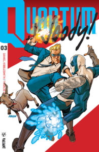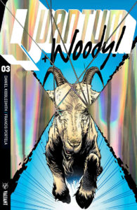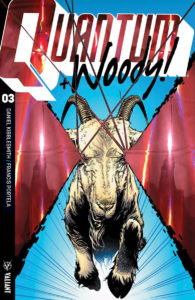 If you add them all up, this would be Quantum and Woody’s 50th issue! What better time to answer the eternal question: “Whatever happened to the Goat, anyway?” At last, the whole saga of Dr. Derek Henderson’s transformation from brilliant physicist and beloved father into a barnyard animal of unimaginable power can finally be told…and all of his secrets revealed, beginning with the long-awaited birth of the Goat’s baby!