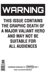 *All covers for HARBINGER RENEGADE #5 will ship with a special advisory overlay.