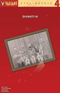 The world has gone red, and now the epic final confrontation begins as Divinity, Ninjak, Shadowman, Komandar Bloodshot, X-O Manowar, and the Red Brigade all choose their side on the lines of the coming battle… Wait, you think we’ll tell you how this one ends? Nyet, comrade! The universe as we know it hinges on this, so make sure you read this one first, Valianteers!