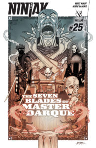 Once sworn enemies, Ninjak and the Shadow Seven have forged an uneasy alliance to accomplish their singular goal: kill Master Darque! But why can’t Colin King shake the feeling that he’s leading a suicide mission, or that his mysterious benefactor, Sandria Darque, isn’t giving him the whole story? Ninjak’s about to confront a terrifying truth…and the answers just might destroy him!
