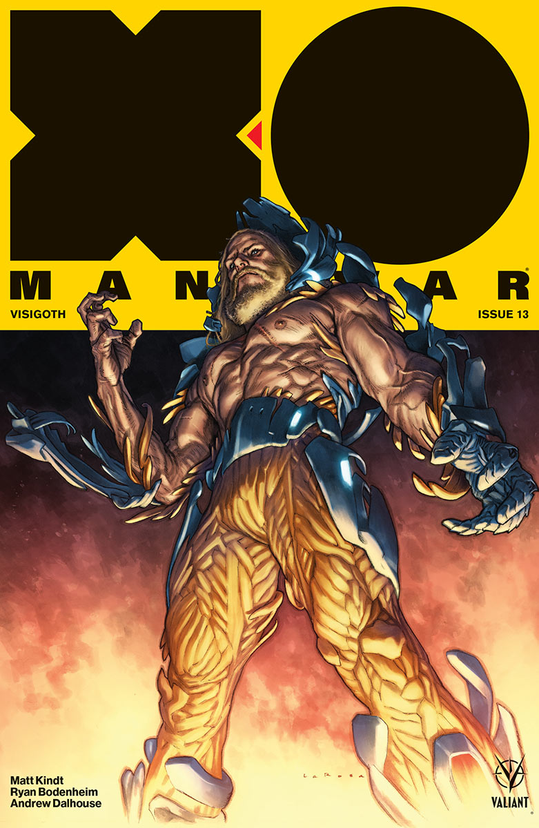 The end of X-O Manowar’s year-long conquest at the farthest reaches of the Valiant Universe draws near – and a powerful new beginning awaits – as New York Times best-selling writer Matt Kindt (ETERNITY) and astonishing artist Ryan Bodenheim (The Dying & The Dead) unleash the final reckoning of “VISIGOTH”!