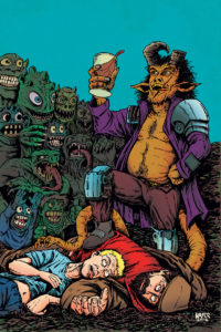 B&W Sketch Variant by DAVID LAFUENTEArcher and Armstrong and Mary-Maria versus Bacchus —a dude who thinks he’s the god of wine!At last…Bacchus’ diabolical plan stands revealed: get Archer and Armstrong drunk! Too bad one is an immortal with a liver of steel and the other is a bit of a lightweight.That can only mean one thing: Mary-Maria to the rescue! But can she and Armstrong put aside their differences in time to hold Archer’s hair back? Or is he about to ruin the expensive interior of Armstrong’s bottomless satchel?!