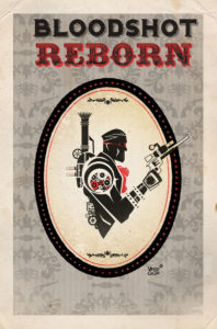 Variant Cover by MIKE CHOI“THE ANALOG MAN” slams into a wreckage-strewn showdown that will shatter Bloodshot’s world…or what’s left of it…Los Angeles. Thirty years later. The new mystery at the center of America’s post-apocalyptic future stands revealed when Bloodshot and Ninjak finally discover the identity of the Man in the White Tower. Who is he? Why does he ruthlessly rule over Los Angeles? And what is his connection to the silent army of X-O Manowar sentries that police this world, the strange Goo-tech that pervades it…and to even Bloodshot himself?