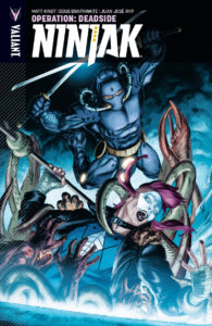The purpose of their mission was classified. Now, out of options, MI-6 has recruited their most elite operative – codename: Ninjak – to follow the doomed mission’s sole witness back into the dimension called Deadside…and bring her missing teammates home. What will they find there? And who will be waiting for them? Jump on board here as New York Times best-selling writer Matt Kindt (DIVINITY) and superstar artists Doug Braithwaite (ARMOR HUNTERS) and Juan José Ryp (Clone) reunite for a terrifying journey into an unknown plane of existence…and bring Ninjak head-to-head with Shadowman.