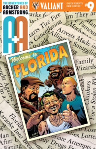 At long last, Valiant’s gallant adventurers have finally located Armstrong’s long-missing wife…in that dreaded land that dare not speak its name: Florida! But after centuries of thinking that his near-immortal bride, Andromeda, was just a booze-induced hallucination, how will Armstrong make up for years of lies, losses, and infidelities? And, as if that wasn’t enough, a nefarious new force is about to release an army of bathsalt-using “Florida Men” to finish off Archer & Armstrong once and for all!