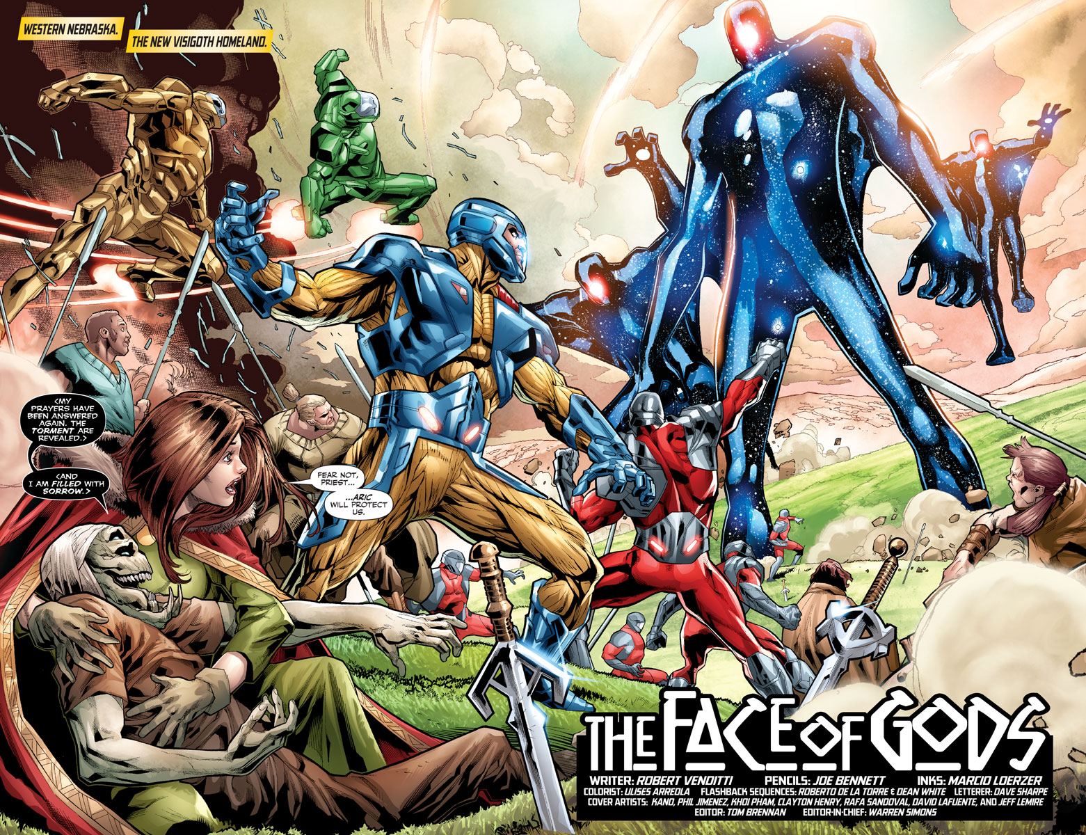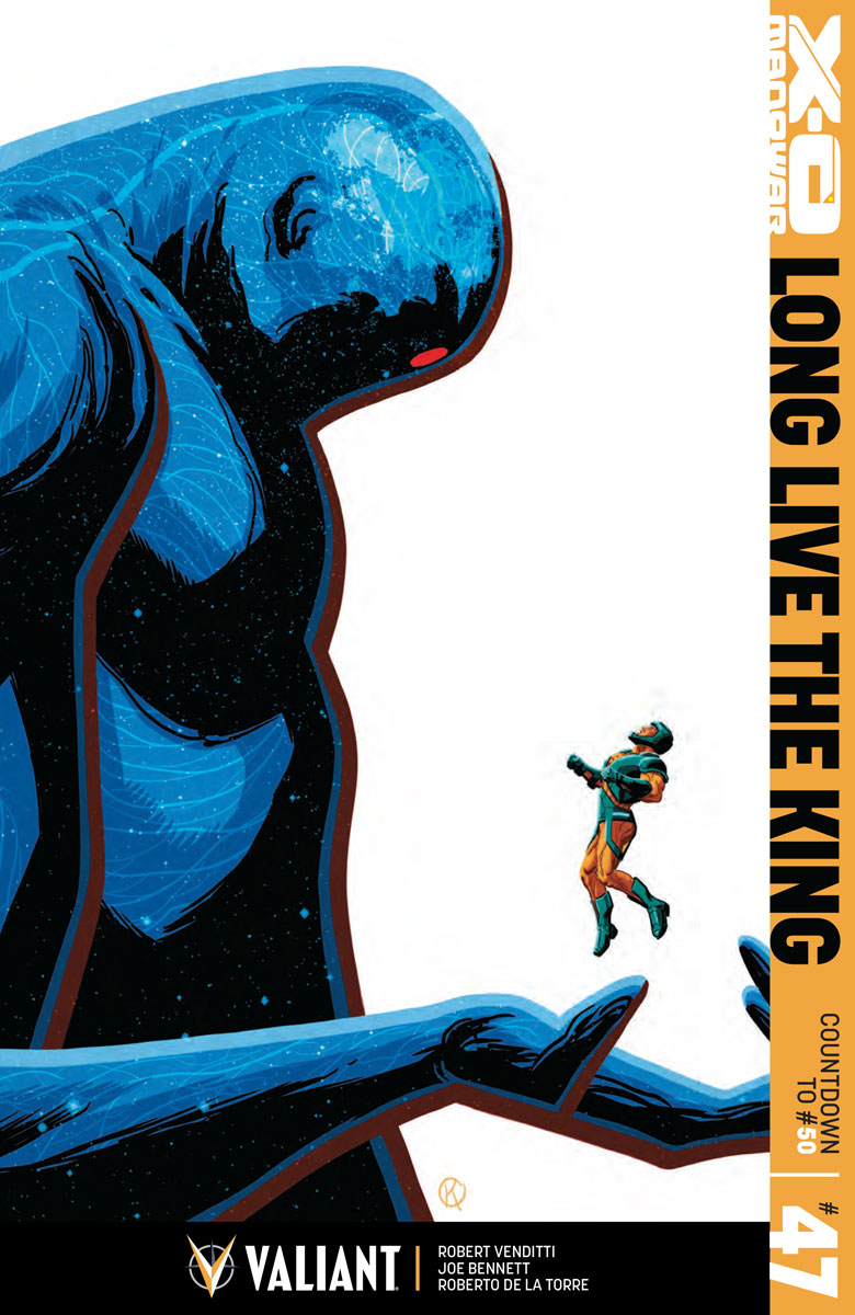 Finally: The countdown to the greatest Valiant milestone of all time begins in the X-O MANOWAR #47 SECOND PRINTING – the FIRST ISSUE of “LONG LIVE THE KING”! Witness history in the making as New York Times best-selling writer Robert Venditti (Hal Jordan & The Green Lantern Corps.) and acclaimed artists Joe Bennett (52) and Roberto de la Torre (Daredevil) begin the march toward X-O MANOWAR #50 with a cataclysmic turning point that will bring our world to its knees! An unthinkable new foe has arrived on Earth… They are The Torment – and their name means death. Thought to be a legend by the Vine, they have now become Earth’s violent reality. As old as the universe itself, they have traveled for eons to reach us…in search of Aric of Dacia and the unstoppable X-O Manowar armor. Can Aric challenge a seemingly omnipotent threat with motives beyond the comprehension of mortal men? Will the armor truly be our world’s salvation, just as the Vine’s myths foretold? And is this the beginning of the end for X-O Manowar – or the beginning of something even bigger?