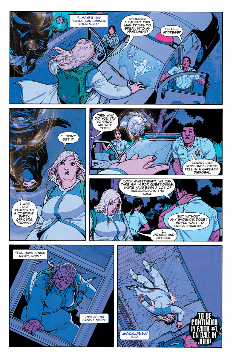 - FAITH #1 by Jody Houser, Pere Perez & Marguerite Sauvage in July