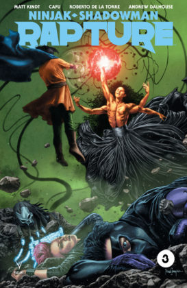 Finally: Ninjak and Shadwoman journey deep into the Deadside for the ultimate supernatural showdown in the RAPTURE #3 SECOND PRINTING – on shelves alongside the series’ fiery finale in RAPTURE #4 (of 4)! New York Times best-selling writer Matt Kindt (X-O MANOWAR, Mind MGMT) and explosive artists CAFU (RAI) and Roberto de la Torre (Daredevil) unleash the penultimate chapter to Valiant’s first fantasy-fueled event here as Colin King and Jack Boniface embark on a fantastical quest to stop the ancient menace called Babel from piercing Heaven itself…and unleashing armageddon upon Earth!
