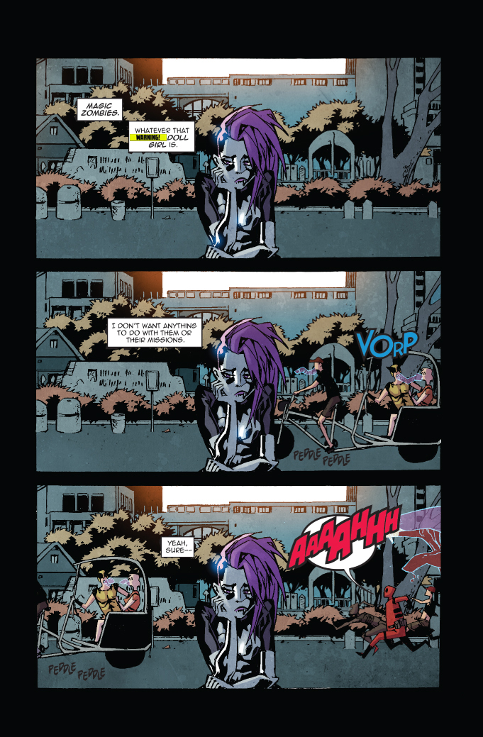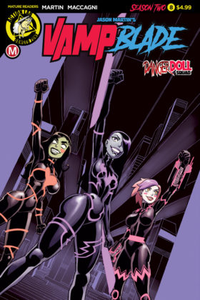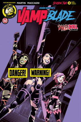 Vampblade’s adventures with Zombie Tramp and DollFace conclude… wait, no they don’t! This issue leads directly into the new Danger Doll Squad crossover mini-series, also out this month!!