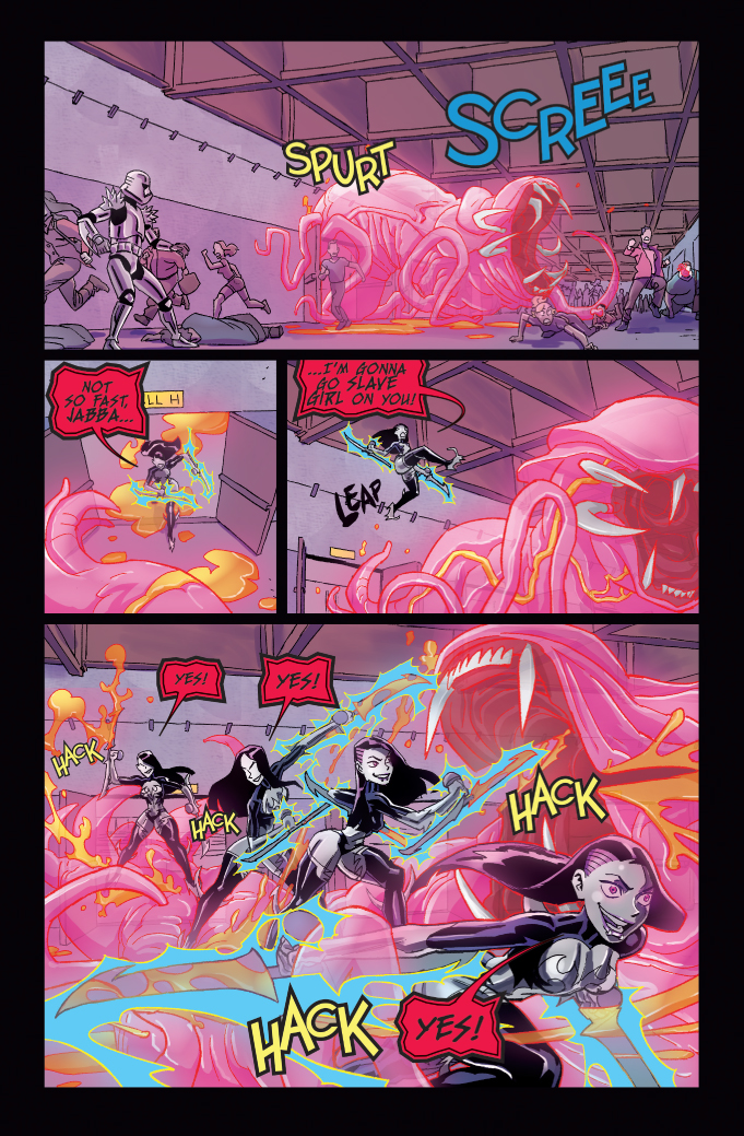 VAMPBLADE VOLUME 4 is the beginning of the second season of the series and is the perfect jumping on point for new readers. Fans of ZOMBIE TRAMP and DOLLFACE won’t want to miss comic fan Katie Carva, the mystically mysterious Vampblade, as she fights invisible other-dimensional vampires straight from the 90s comics of her namesake.
