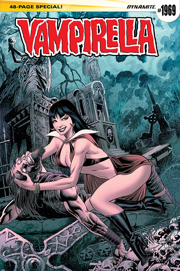 Vampirella first appeared on the scene in 1969 and quickly became a fixture of comics, horror and pop culture! Now, Dynamite Entertainment proudly presents a special, over-sized issue celebrating those heady days with a who’s who from their roister of all-star writers and artists! Just look at this line-up: Nancy Collins joined by artist Fritz Casas, Eric Trautmann joined by painter Brett Weldele, Phil Hester joined by artist Jethro Morales, Mark Rahner joined by artist Colton Worley, and David Walker joined by artist Aneke! Each presents a special tale showcasing the best of the former horror hostess from Drakulon!
