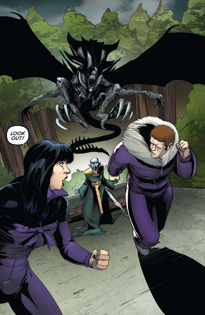 The death toll mounts, and the fate of the Xenomorph that hatched from within Vampirella stands revealed!