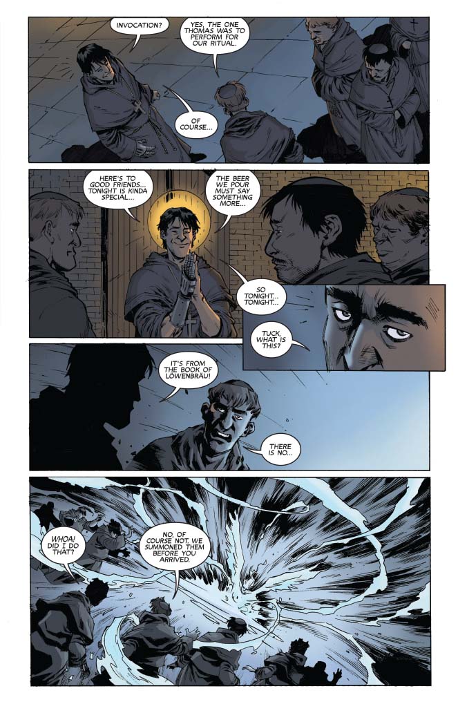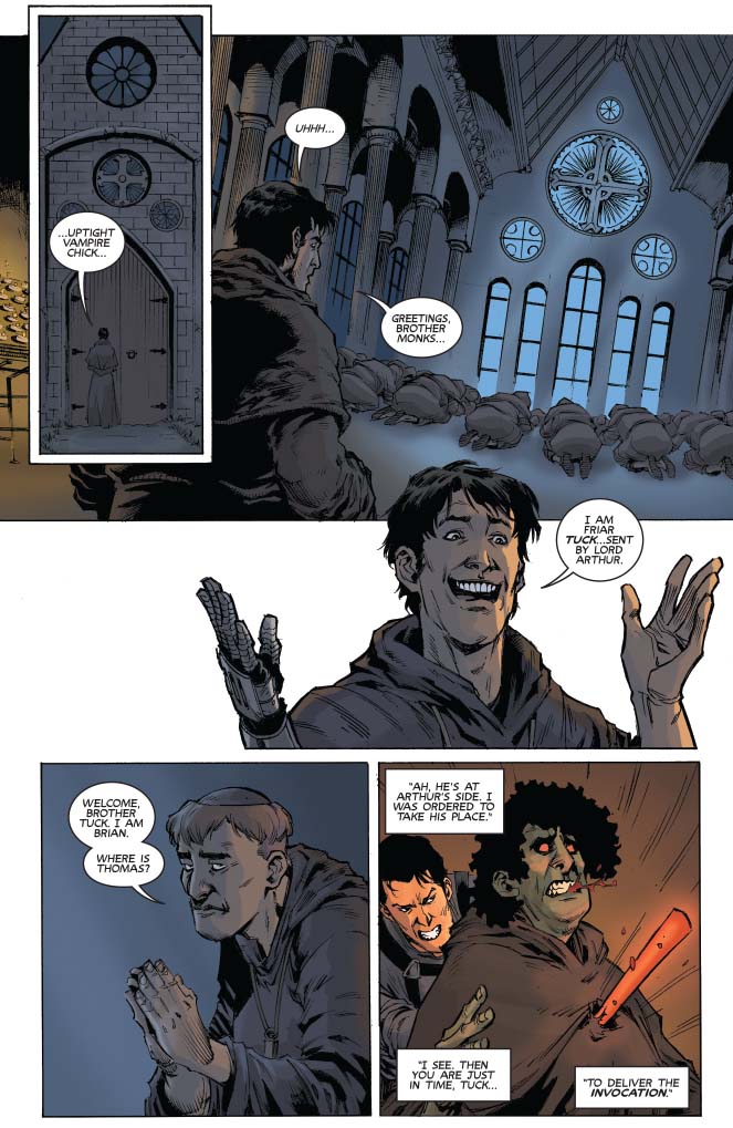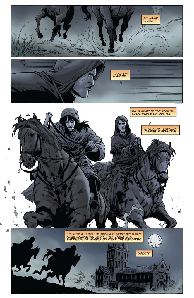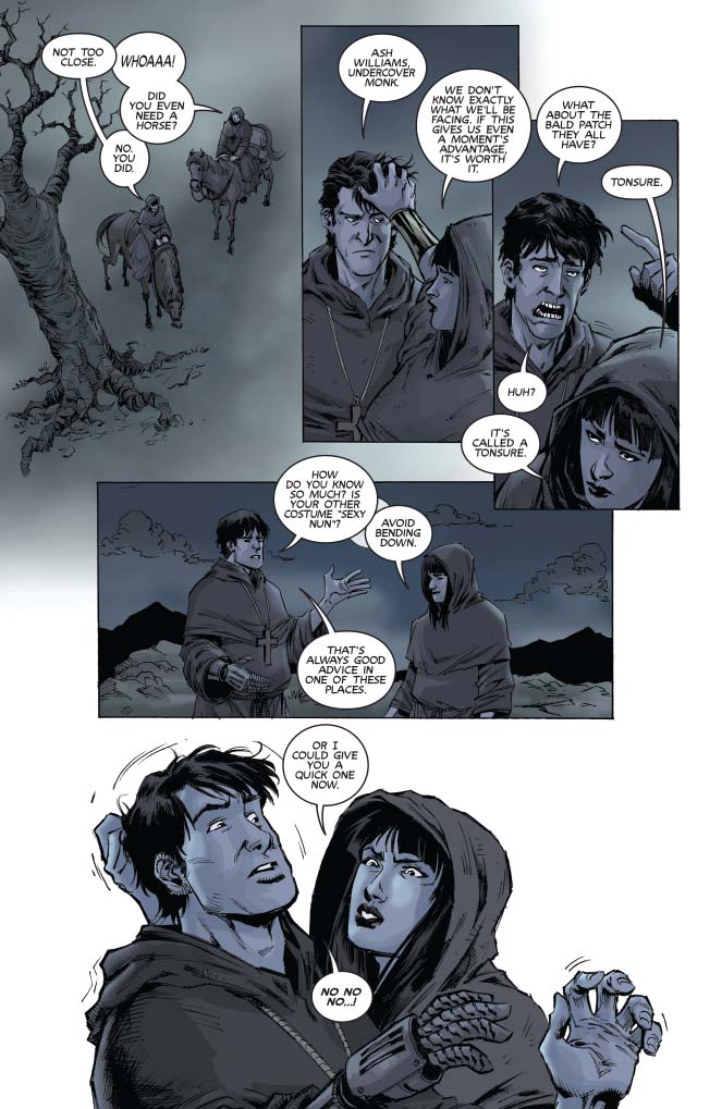 The splatterific climax! After Vampi’s witch trial, she and Ash race to face an abbey swarming with possessed monks. Which is just a speed bump compared to the demonic angels the monks have conjured. A secret chapter from before the Deadite siege in Army of Darkness, from Mark Rahner (The Twilight Zone Shadow & Substance) and Jethro Morales (Dejah of Mars).