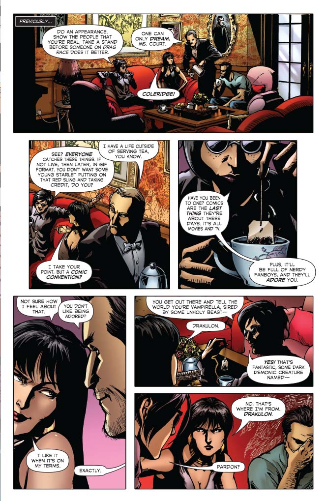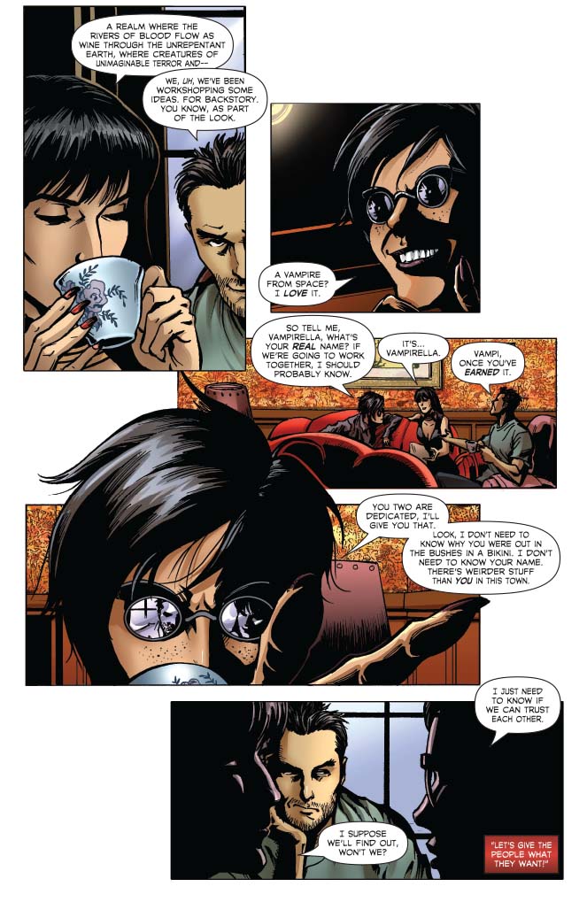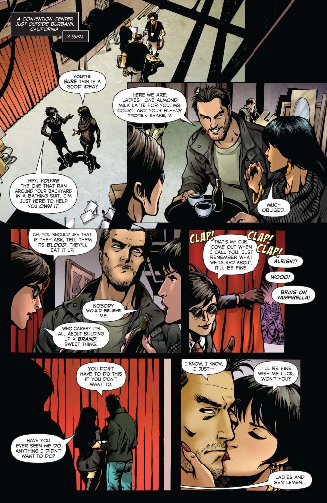 Vampirella makes her stage debut as an icon, but the spotlight can be deadly. Everyone in Hollywood seems to have their secrets, from the mysterious Slade to Vampi’s new agent, Juliette Court. As her star rises, so do… (wait for it) …the STAKES!