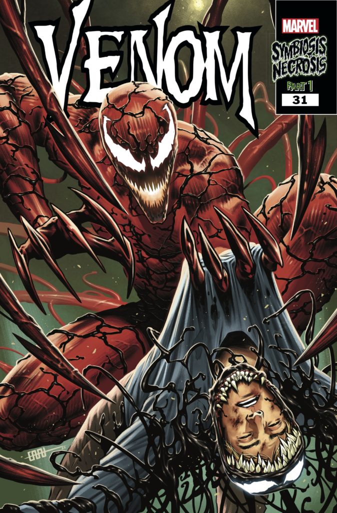 It all kicks off in VENOM #31 where, born anew in symbiote goo and blood, Cletus Kasady is more dangerous and violent than ever before – and has his sights dead set on the unsuspecting Venom! Untested against the might of his symbiotic sibling without his father by his side, will Dylan Brock be able to hold the sadistic serial killer at bay? Or will Carnage live up to its namesake and leave another brutalized symbiote host in its wake?!