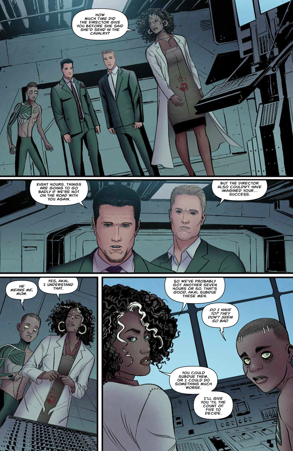 Synopsis: Dr. Baker holds Shelley and Byron in her underground lab as she unveils her rebooted son Akai for the first time.