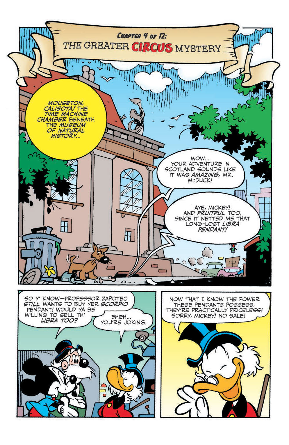Man-eating tigers menace Mickey under the big top in “Search for the Zodiac Stone,” Part 4 of 12. Then we’re celebrating Comics and Stories’ 75th anniversary with a new Daan Jippes Donald Duck adventure!