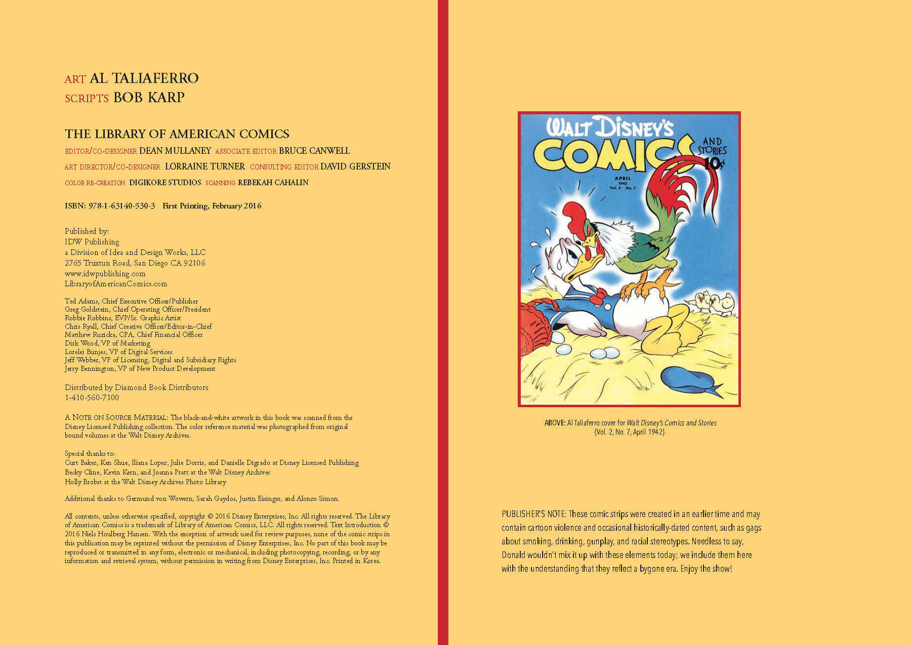 From the Disney Vaults—the original Donald Duck color Sunday comics collected in a book series for the very first time! After a try-out as part of the Silly Symphonies series, Donald was given his own Sunday comics page in late 1939 and it became an instant hit. This premiere volume includes more than three full years of rare Sunday comics, from the first strip on December 10, 1939 through the end of 1942. Drawn by Al Taliaferro and written by Bob Karp, the comics are reproduced from pristine original material in the Disney Vaults!