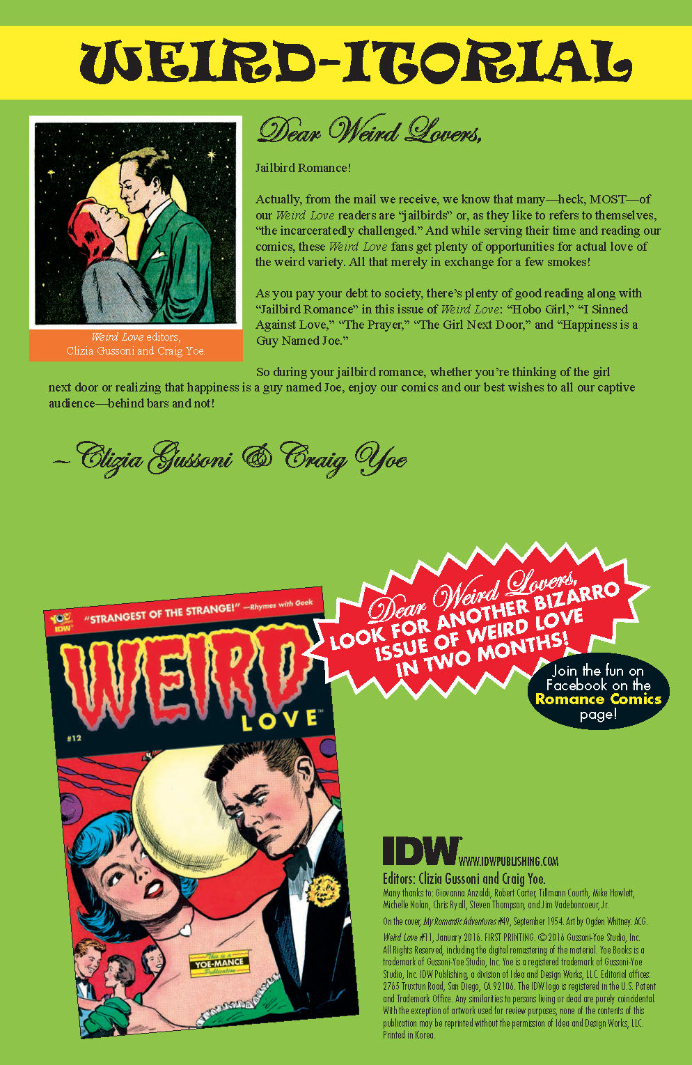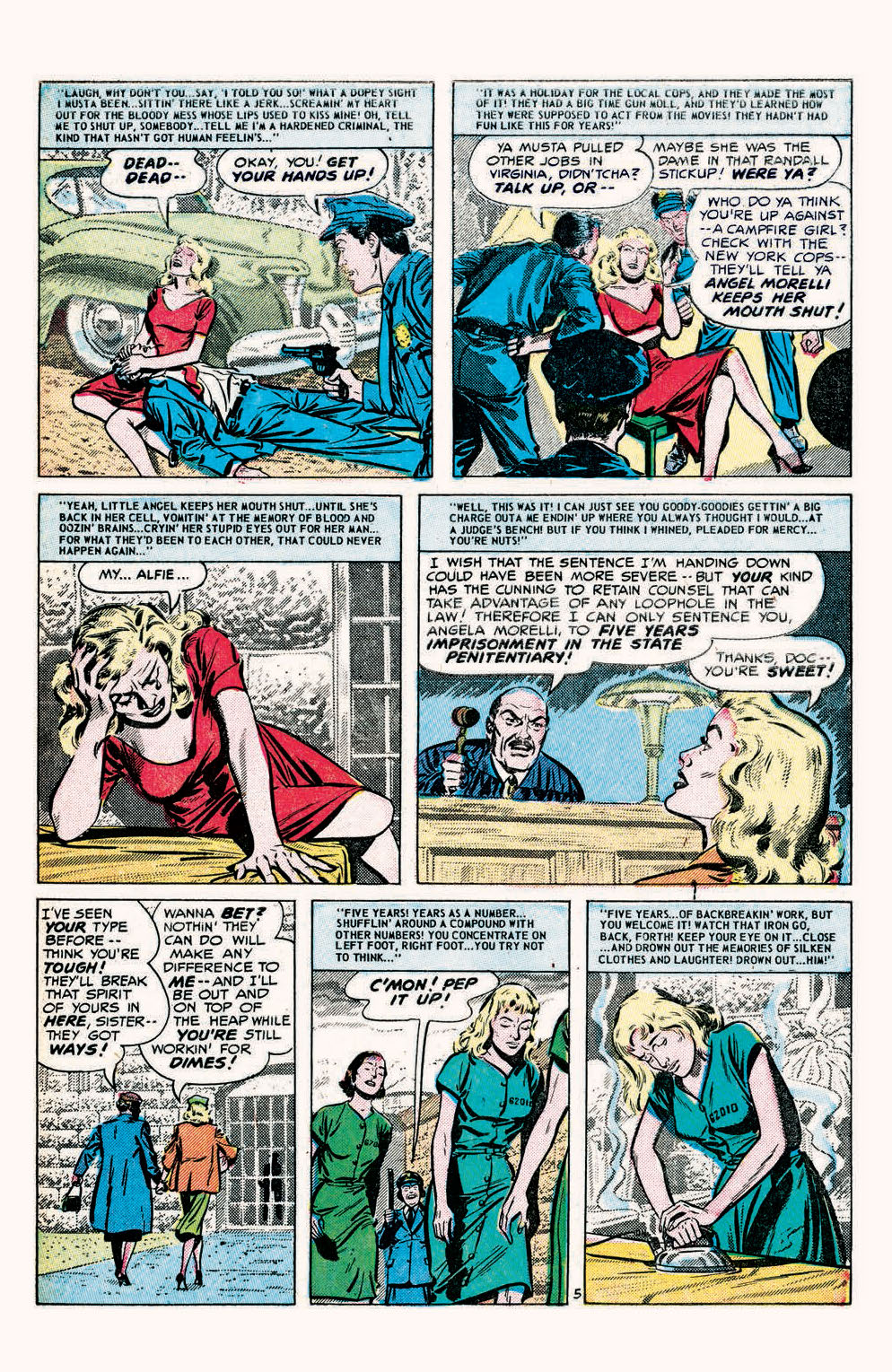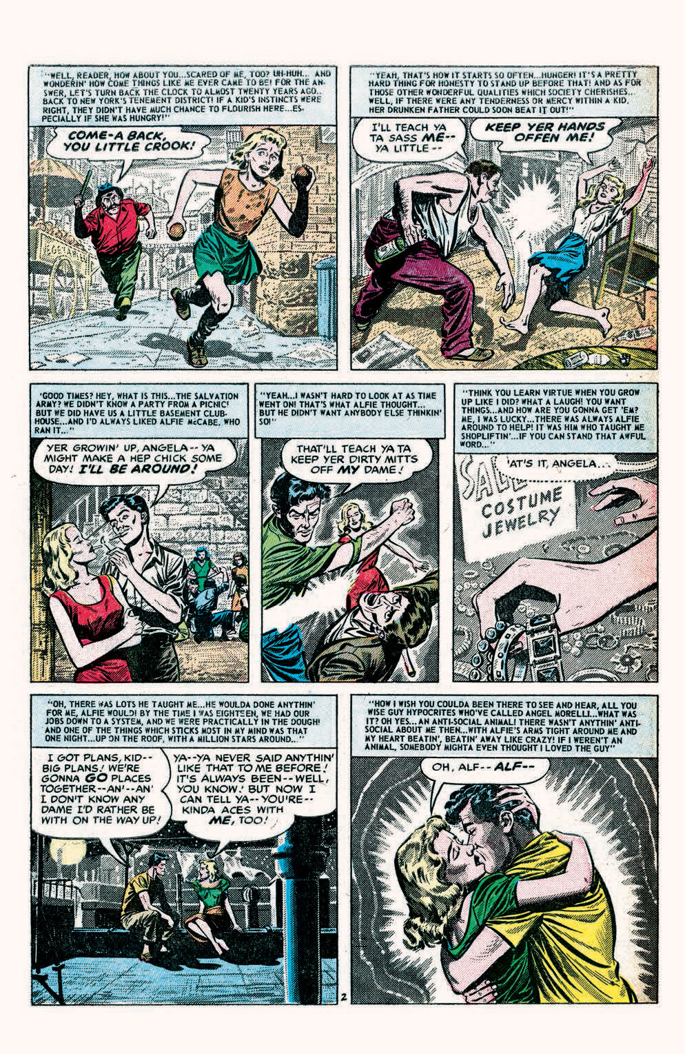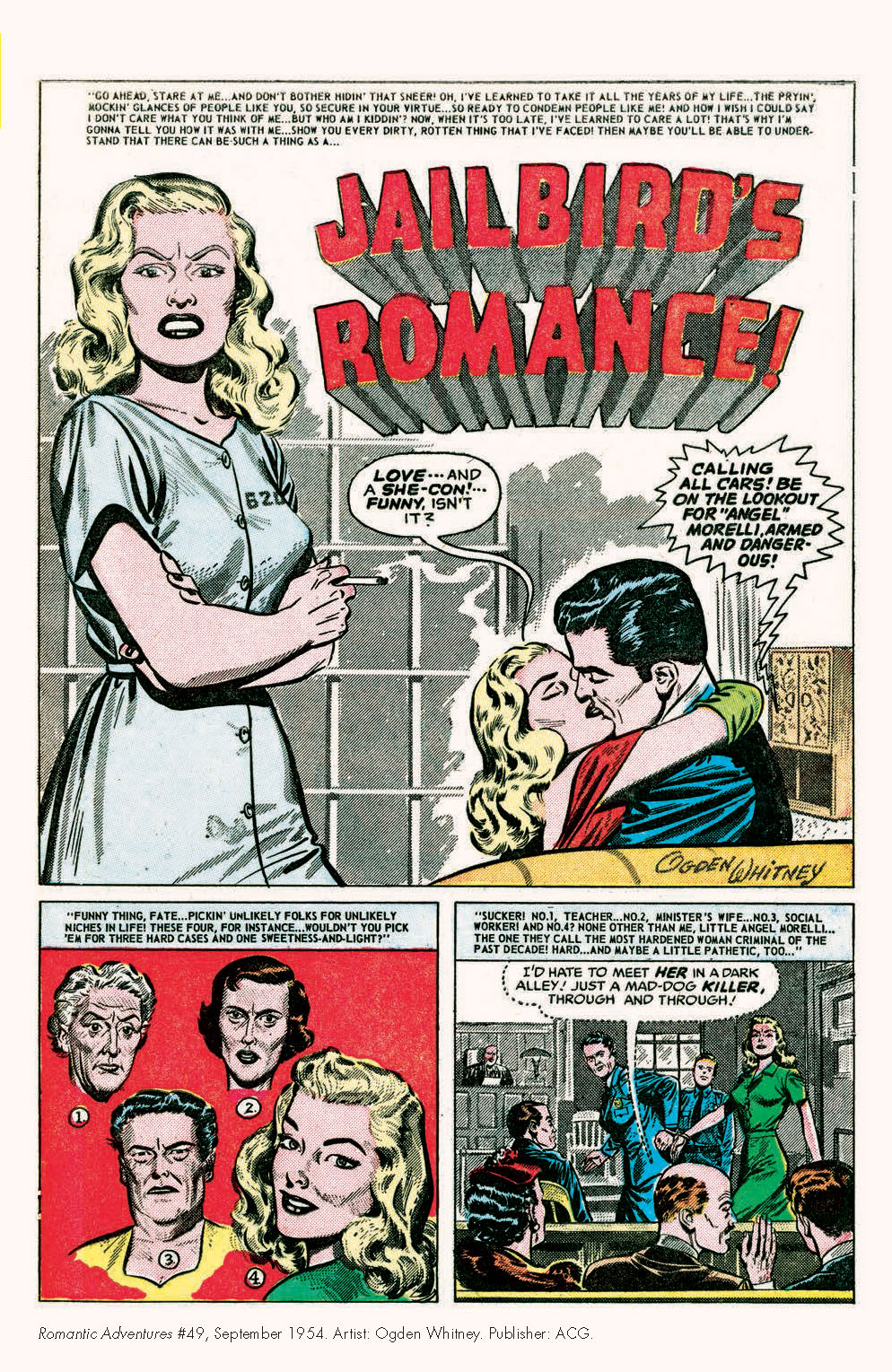 The cover story alone, “Jailbird’s Romance”, would cost you a couple of grand on the collector’s market! It’s drawn by the demented duo Ogden Whitney and Richard Hughes. More bizarre stories include “It’s Like Love, Pussycat!” “Pick-up,” and in “Savage Kisses,” a knife-wielding, half-naked, island girl fights Nazis and wins the heart of an American soldier. Then, it gets worse, with the most sordid comic story we’ve ever printed!