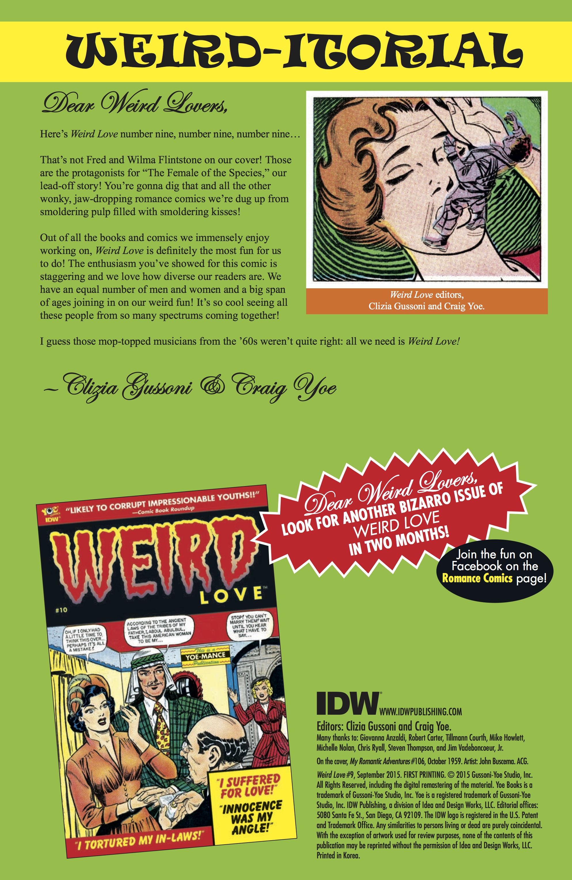 The New York Journal of Books calls Weird Love, “A wonderful and wildly entertaining collection of romance stories, some of the craziest and weirdest love stories you will ever read. It is impossible to not laugh out loud at some point. Every story in here is one hundred percent high fun.” This issue features The Mini-Dress, Female of the Species, Breakdown, Leader of the Pack, Sorority Sisters, Take Him Shopping, Call Me Wicked and JAILBAIT!
