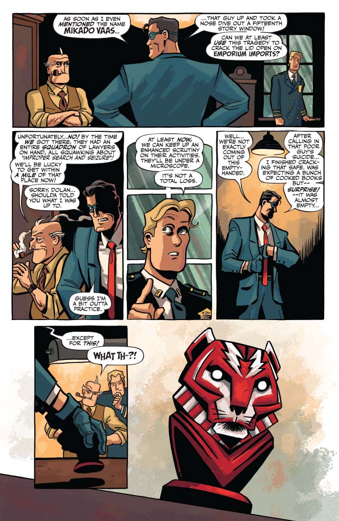 The Spirit and his comrades continue their search to uncover the secrets of the mysterious and deadly Mikado Vaas. Our blue-masked hero’s quest brings him into contact with an equally secretive and capable character from his past as well as a fellow (and rather unexpected) crusader for justice on the Central City streets. Weatherby Palmer’s desire to unseat Commissioner Dolan runs into a certain immovable object… leading to a far more sinister resolve. Join Eisner Award-winner Matt Wagner and the stylish visual team of artist Dan Schkade and colorist Brennan Wagner for the latest installment in the ongoing adventures of one of comicdom’s most iconic characters – Will Eisner’s The Spirit!