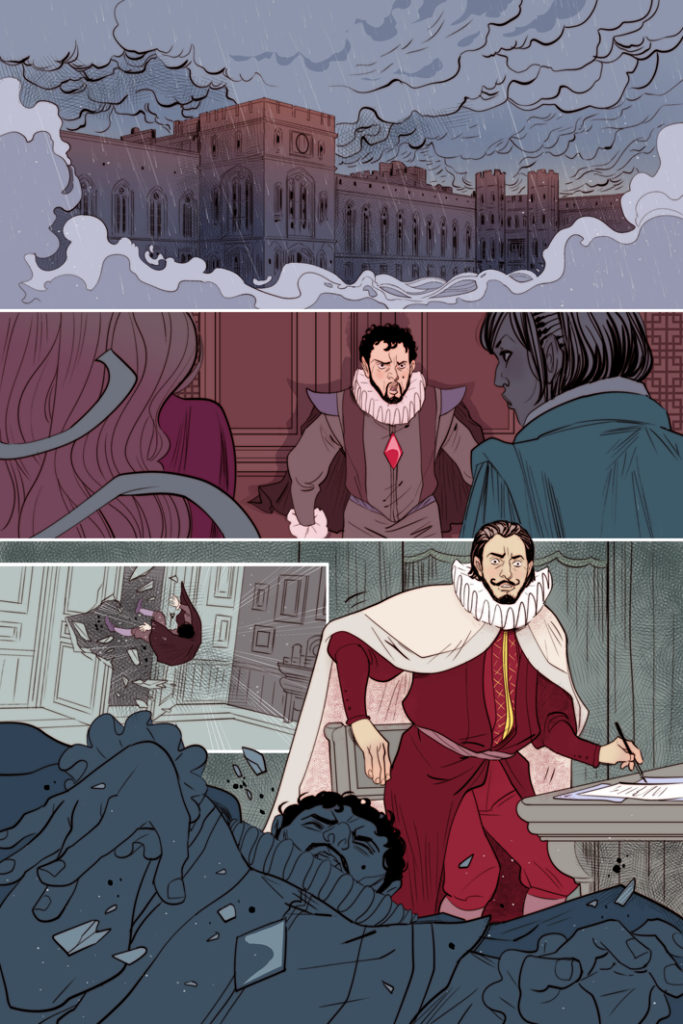 New York, NY—May 18th, 2015— This June – magic and might battle marvelous monstrosities as Angela and Sera take the fight to Battleworld! Today, Marvel is pleased to present your new look at 1602 WITCH HUNTER ANGELA #1 – a brand-new Secret Wars series! Blockbuster writers Marguerite Bennett and Kieron Gillen are joined by artists Stephanie Hans and Marguerite Sauvage for an adventure fueled tale that has to be seen to be believed! In King James’ England, two names are feared above all else – Angela and Sera, scourges of all creatures that haunt their Battleworld domain. They seek a new, seductive evil – not witchbreed, but deal-making Faustians, those who bargain with ancient creatures in return for unnatural power. As wicked evil and malicious shadow creep over the land – will Angela and Sera destroy this evil, or will they succumb to it? The answers lie within this June in 1602 WITCH HUNTER ANGELA #1!