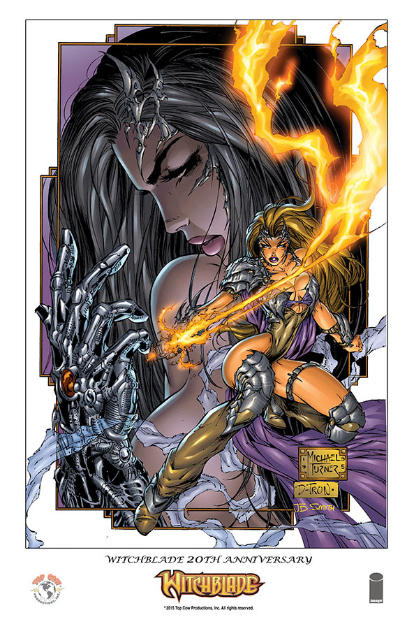 Top Cow’s long-running WITCHBLADE series, first launched in 1995 and created by Marc Silvestri, David Wohl, Brian Haberlin, and Michael Turner, will celebrate its 20th Anniversary with a deluxe WITCHBLADE 20TH ANNIVERSARY “ART OF” hardcover, a Commemorative Lithograph, and will come to a jaw-dropping conclusion with WITCHBLADE #185—the final issue.