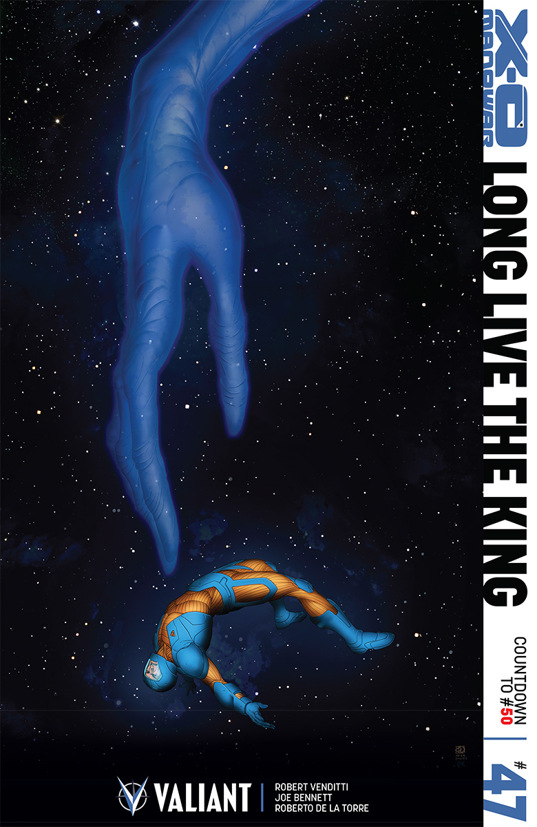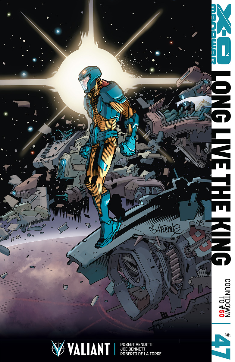 The countdown to X-O MANOWAR #50 begins with “LONG LIVE THE KING” – a striking cosmic showdown beginning this June in X-O MANOWAR #47 by Venditti and acclaimed artists Joe Bennett(52) and Roberto de la Torre (Daredevil) that will bring Venditti’s award-winning and critically lauded superhero saga to a world-shaking finale…and mark the beginning of an all-new era for the future of Valiant’s most powerful hero!
