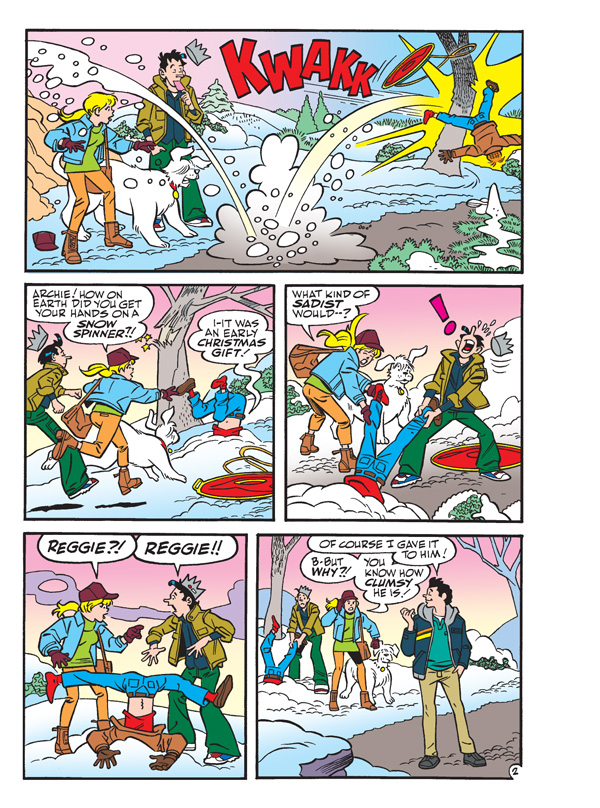 When Reggie “gifts” Archie with a snow spinner, will Archie and the gang have a blast in the snow, or will someone end up limping home—and most importantly, will Betty still have a date for the holiday dance at the end? Find out in “Spinner Winner!” the hilarious new lead story to this comics double digest!