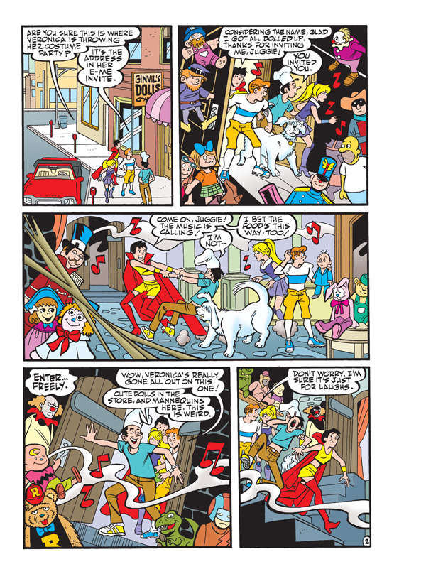 Archie, Betty, Jughead and Ethel are excited for another fun Halloween bash that Veronica’s throwing—and this time, she’s pulled out all the stops to make it a memorable one! From a secret location with creepy dolls and clowns, the gang is sure to be frightened… just one question: where is the woman of the hour? And why do those dolls seem to be following them wherever they go? Find out in the frightfully fun “Scary, Scary Doooo,” the brand new lead story to this comics double digest!