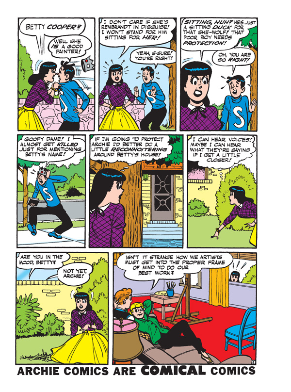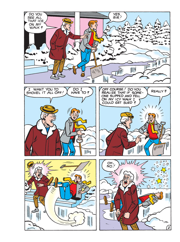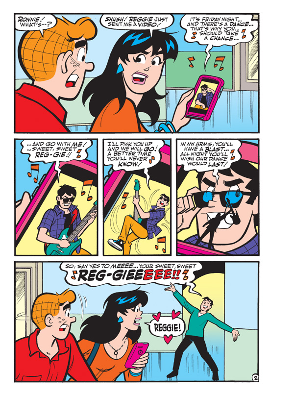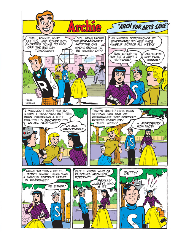 It’s time for the Riverdale High School Winter Dance and Archie needs a date! Unfortunately for him, every girl in school has already been wooed by different guys’ over-the-top ways of asking their dates to the dance! Archie decides he’s going to ask Betty to the dance and he’s going to do it in the biggest, most elaborate way EVER—he’s going to build a giant cake that he can jump out of with his guitar and play Betty a song inviting her to the dance! Will Archie’s pastry plan work, or will his sophisticated scheme have him going stag to the biggest event of the season? Find out in “Take Your Cake and Beat It Too!” the hilarious lead story to this JUMBO-SIZED comics digest!