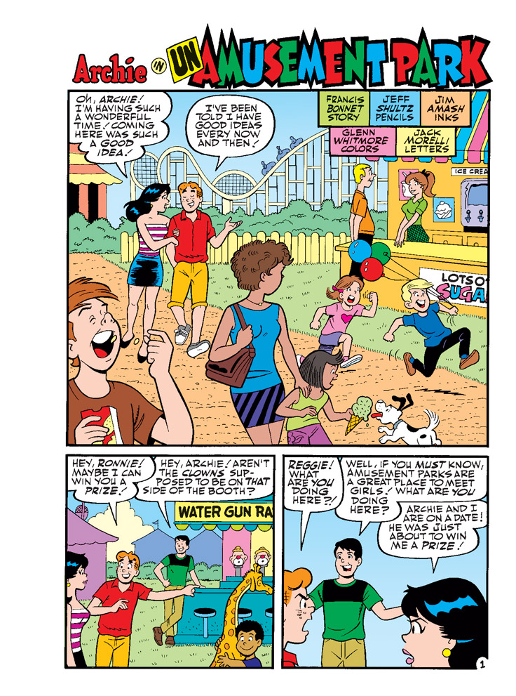 BRAND NEW CLASSIC-STYLE STORY: “Unamusement Park” Archie’s skills are put to the test when Reggie challenges him at the amusement park—which one will win Veronica more prizes?