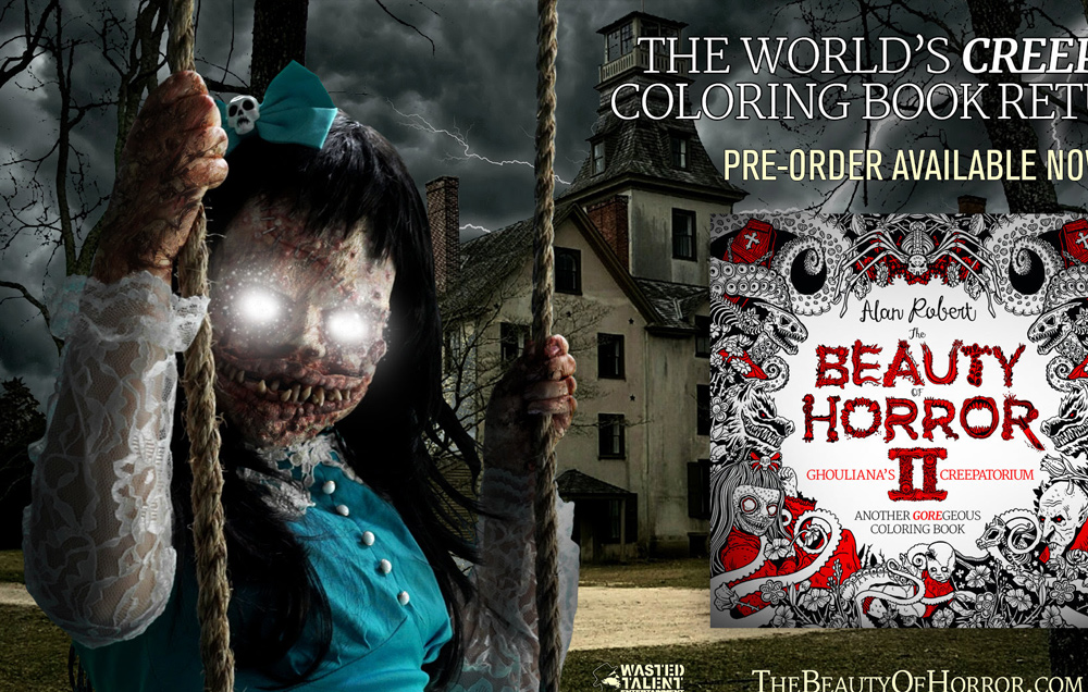 Following up his #1 best-selling adult coloring book The Beauty of Horror, creator and Life of Agony bassist/songwriter Alan Robert has just unleashed a twisted new trailer for Volume Two in the series, titled The Beauty of Horror 2: Ghouliana’s Creepatorium – Another GOREgeous Coloring Book.