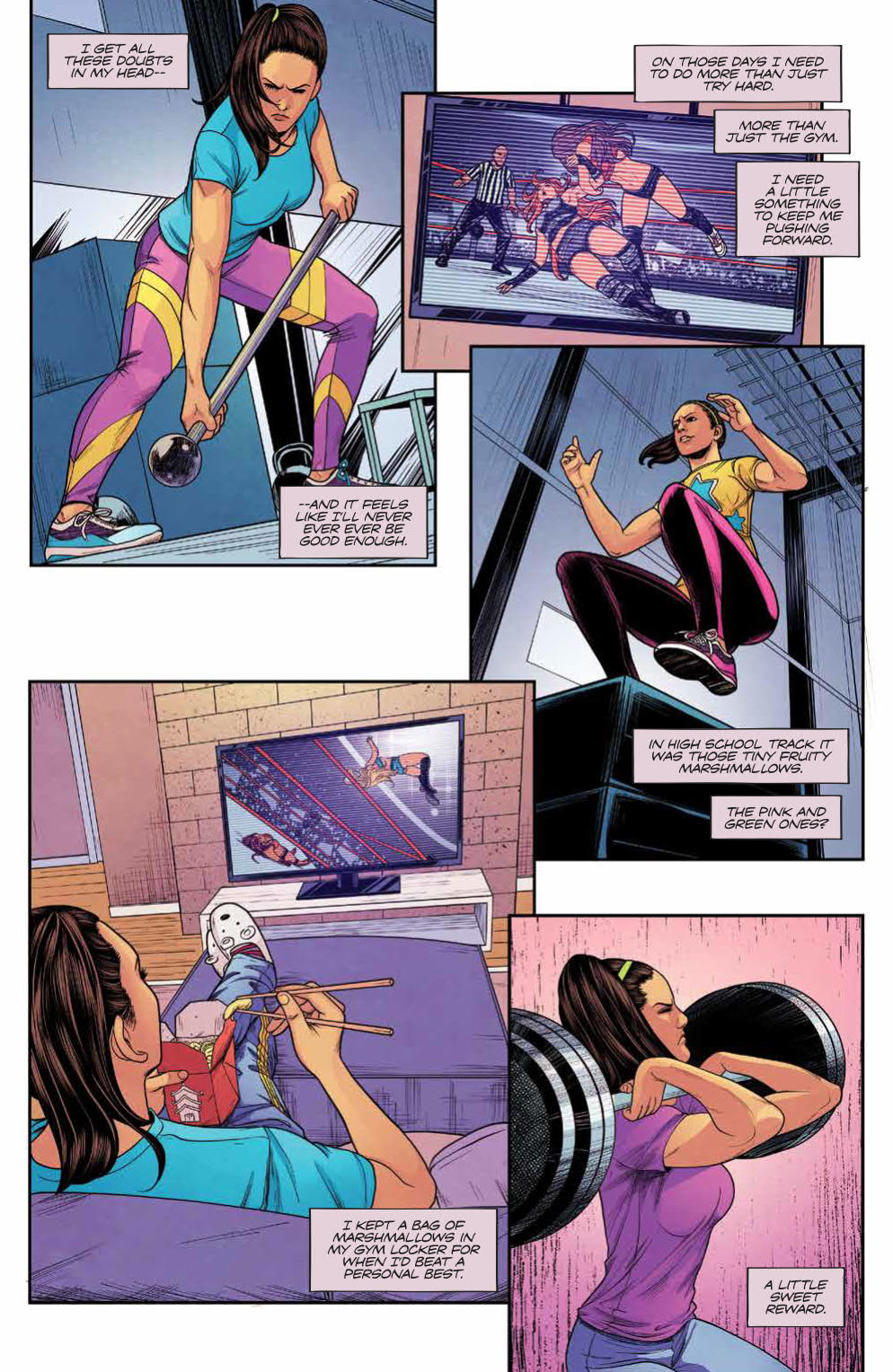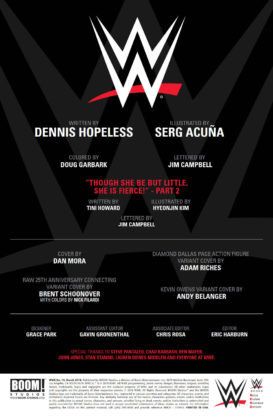 Synopsis: The Women’s Evolution continues as the Four Horsewomen— Becky Lynch, Charlotte Flair, Bayley, and Sasha Banks—climb the ranks of NXT. Plus, the second chapter of the backup story spotlighting the rise of Asuka from Tini Howard (Mighty Morphin Power Rangers: Pink) and Hyeonjin Kim (Sisters of Sorrow)!