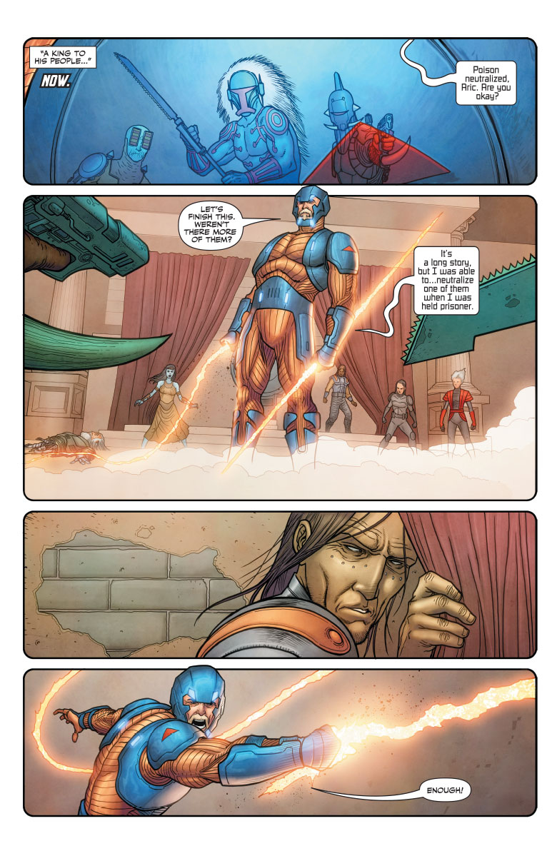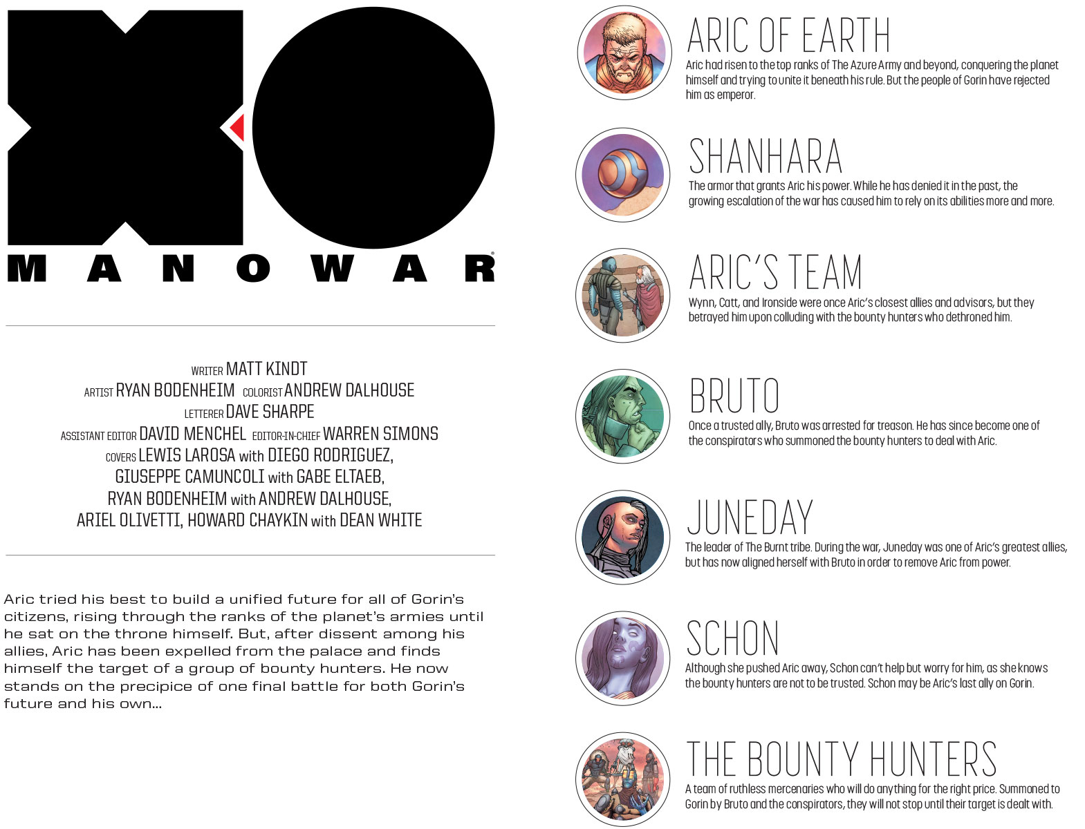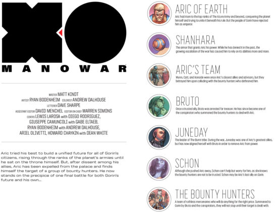 The alien-armored warrior called X-O Manowar once commanded the most formidable army the alien world of Gorin had ever known. Now, his comrades have been forsaken, his crown has been commandeered, and his power has been rejected by the very subjects he once ruled. But he still has his sword…and a never-ending furnace of fury drawn from deep within…
