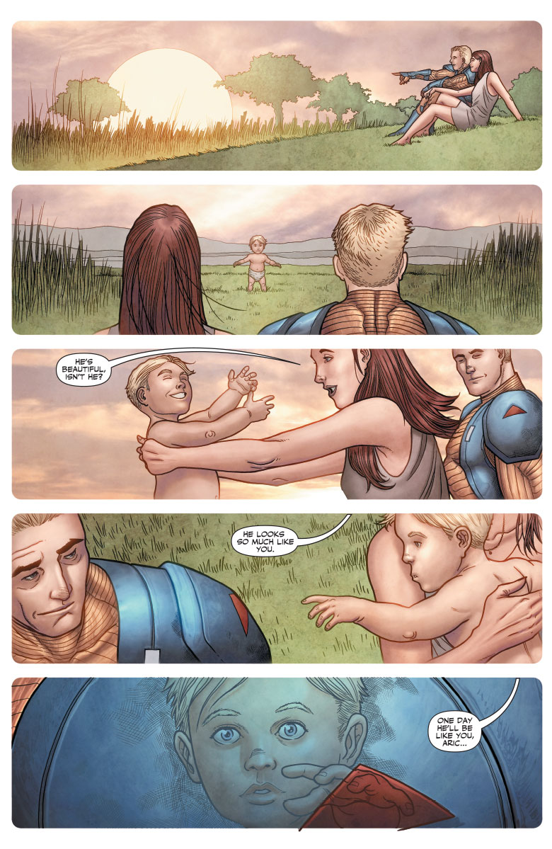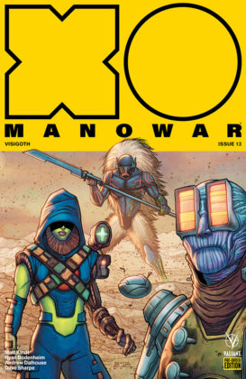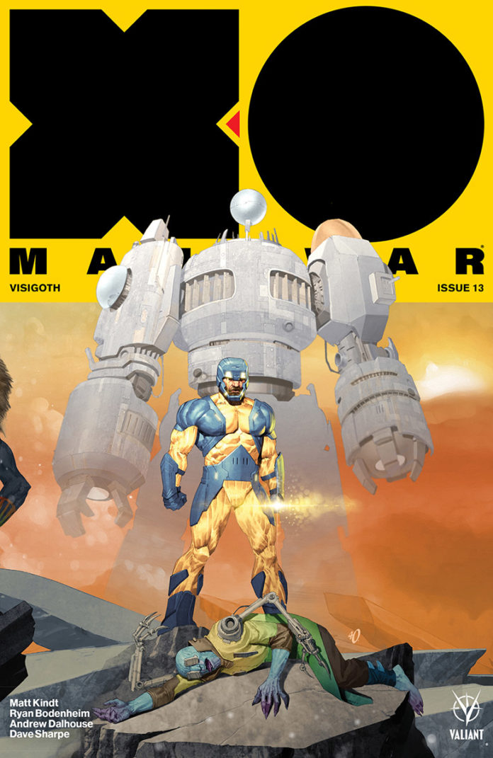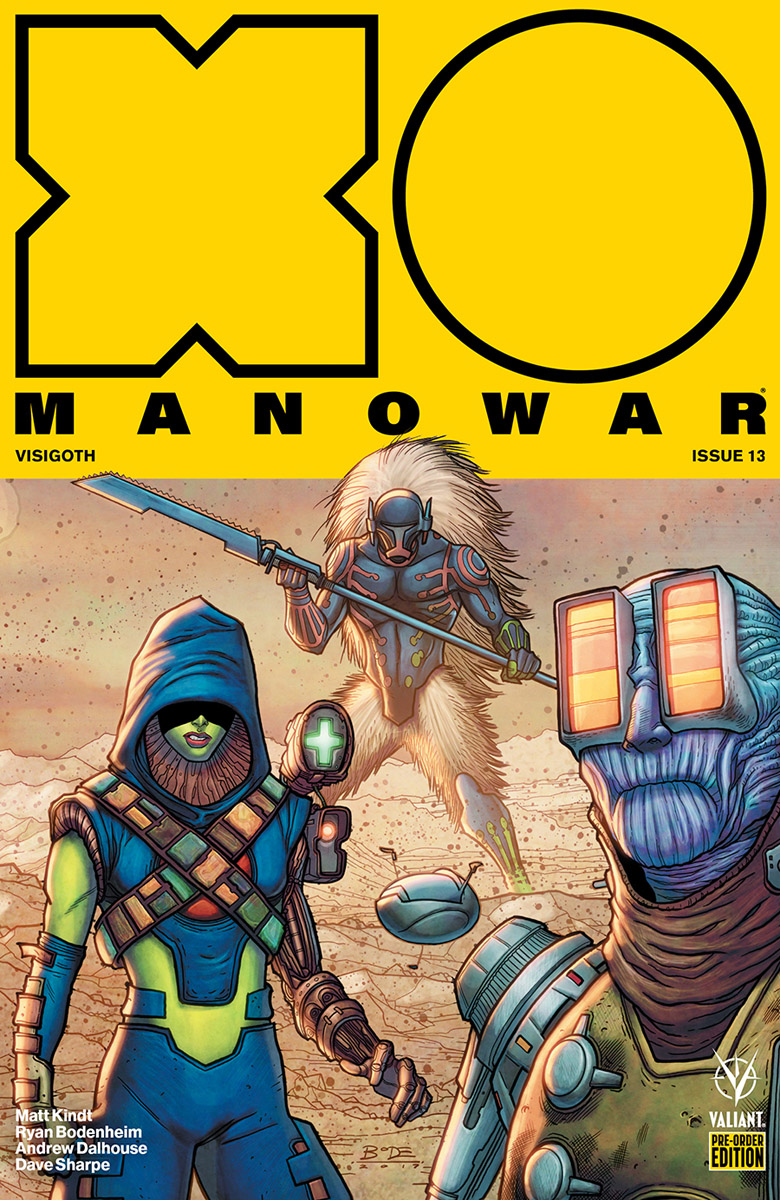 The end of X-O Manowar’s year-long conquest at the farthest reaches of the Valiant Universe draws near – and a powerful new beginning awaits – as New York Times best-selling writer Matt Kindt (ETERNITY) and astonishing artist Ryan Bodenheim (The Dying & The Dead) unleash the final reckoning of “VISIGOTH”!