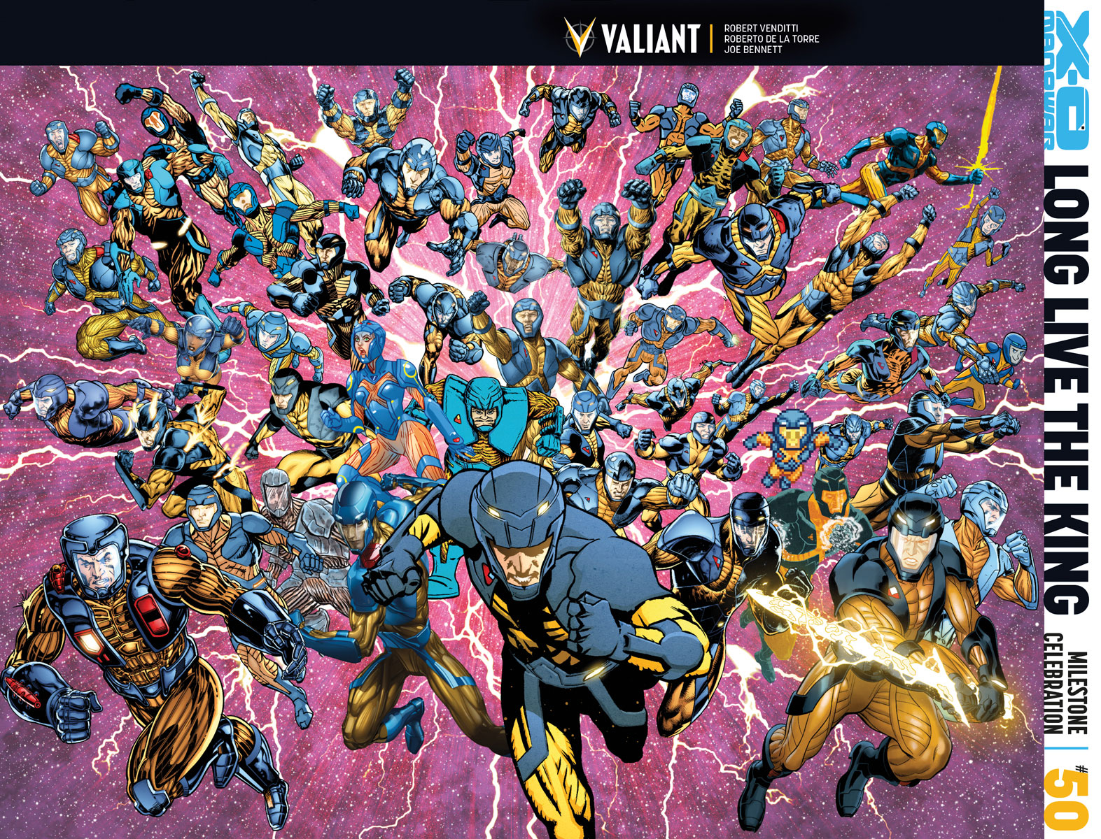On shelves just in time to coincide with the release of X-O MANOWAR #50, the countdown to the greatest Valiant milestone of all time gets even bigger here as New York Times best-selling writer Robert Venditti (Hal Jordan & The Green Lantern Corps) and acclaimed artists Joe Bennett (52) and Roberto de la Torre (Daredevil) send the unstoppable X-O Manowar rocketing to the forefront of his most tumultuous battle yet…and leave the destiny of Valiant’s leading hero forever altered!