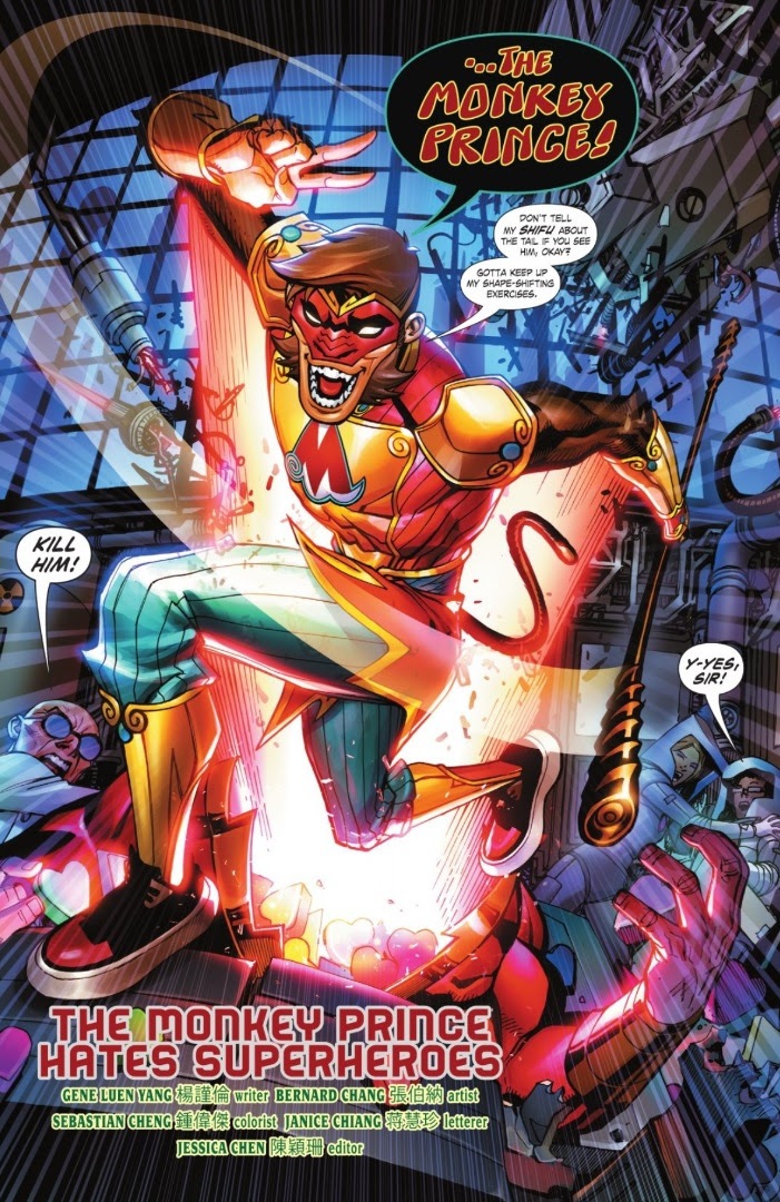 The Monkey Prince debuts in “The Monkey Prince Hates Superheroes,” the final story of DC Festival of Heroes , written by Gene Luen Yang ( Superman Smashes the Klan , Batman/Superman and so much more) and illustrated by Bernard Chang ( Teen Titans , Batman Beyond and, again, so much more). The Monkey Prince is a unique addition to DC’s roster of characters, taking direct inspiration from the Monkey King, the mythological character from the 16th-Century Chinese novel Journey to the West , but given a modern spin and firmly rooted in the DC Universe of today (down to attending Fawcett High School alongside Billy Batson).