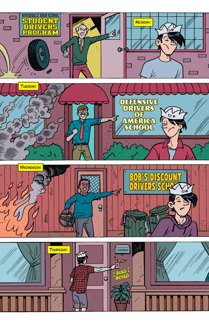 Classic-style Archie makes his return in this ALL-NEW, ALL-AGES comic from Ty Templeton and Dan Parent! Issue 1 features one of five connecting variant covers by Les McClaine. Collect them all to create one giant image of Pop’s Chock’lit Shop!