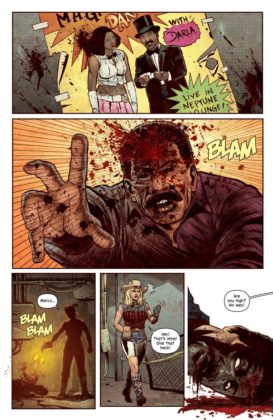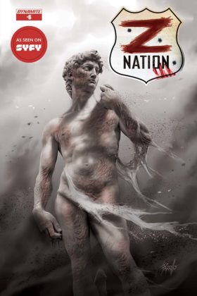 Specialist Israel Johnson and Private Edie Cutler have to flee the zombie filled, capsized cruise ship Empress of the Seas, leading the few surviving passengers to the dubious safety of an offshore oil rig. They’re pursued by the ship’s maniacal Captain and Crew, who are intent on killing the would-be heroes. And the zombie whale that capsized the ship is still waiting in the water to devour whoever wins the final fight to the death in the conclusion to the prequel comic series set in the world of Syfy’s hit zombie series Z Nation, produced by The Asylum created by Karl Schaefer and Craig Engler.