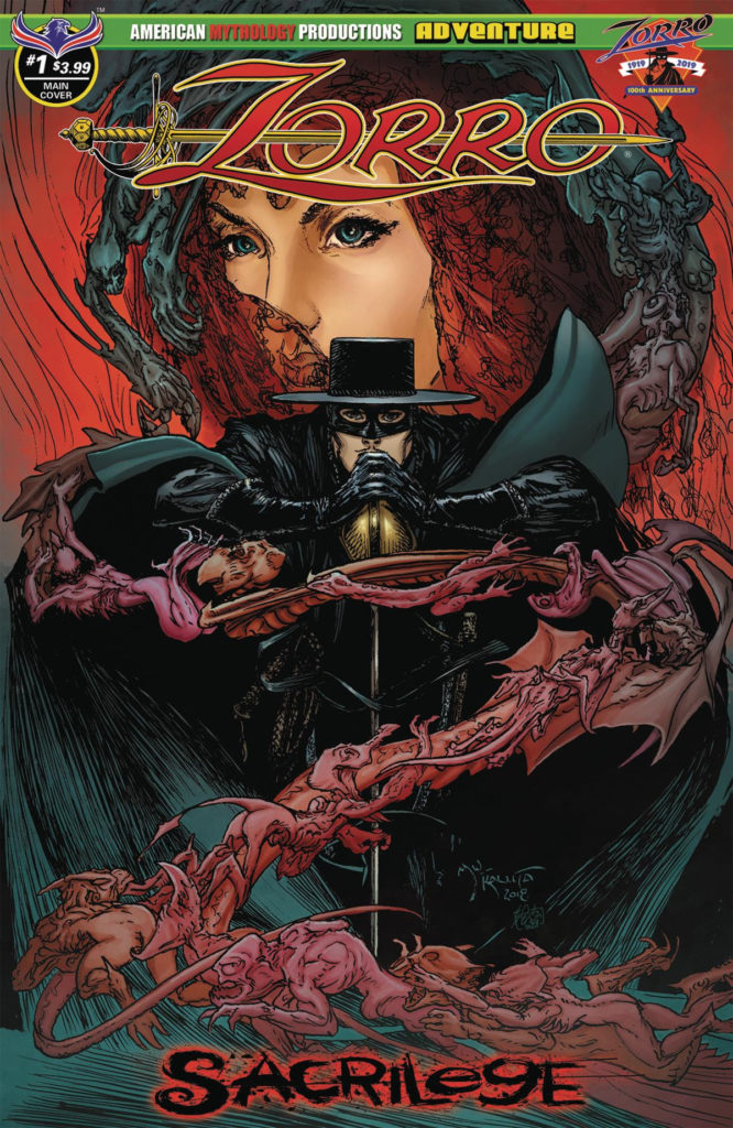 [Baltimore, Maryland] – While other icons and comic book characters have reached milestones marking their 40th, 50th, even 75th anniversary, there’s only one who can claim a century of swashbuckling sensation. The man in black, the “fox,” sword-master supreme and hero to millions of fans the world over, the masked adventurer Zorro turns 100 in 2019. But don’t worry, the soon-to-be centenarian has plenty of tales left to be told, and American Mythology Comics will be leading the charge with a new series of stories to help celebrate the ground-breaking event.